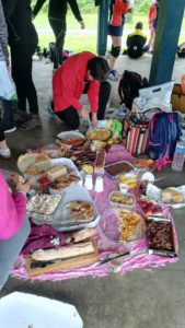 Le midi, une averse nous a privé du pique-nique au bord du lac, mais c’est sous le préau que nous avons pu déguster les bons petits plats apportés par chacun.